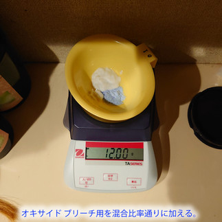 ② ①の合計量とオキサイドブリーチ用が(酸化剤)が1:2の比率になるように計量した。