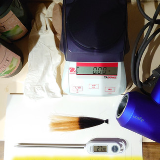 カタログ通りにリフト力があるのかを検証するために半分9レベルの毛束を用いてブリーチ