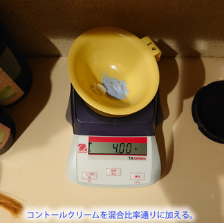 ① コントロールブリーチパウダーとコントロールクリームが3:1の比率になるように計量した。